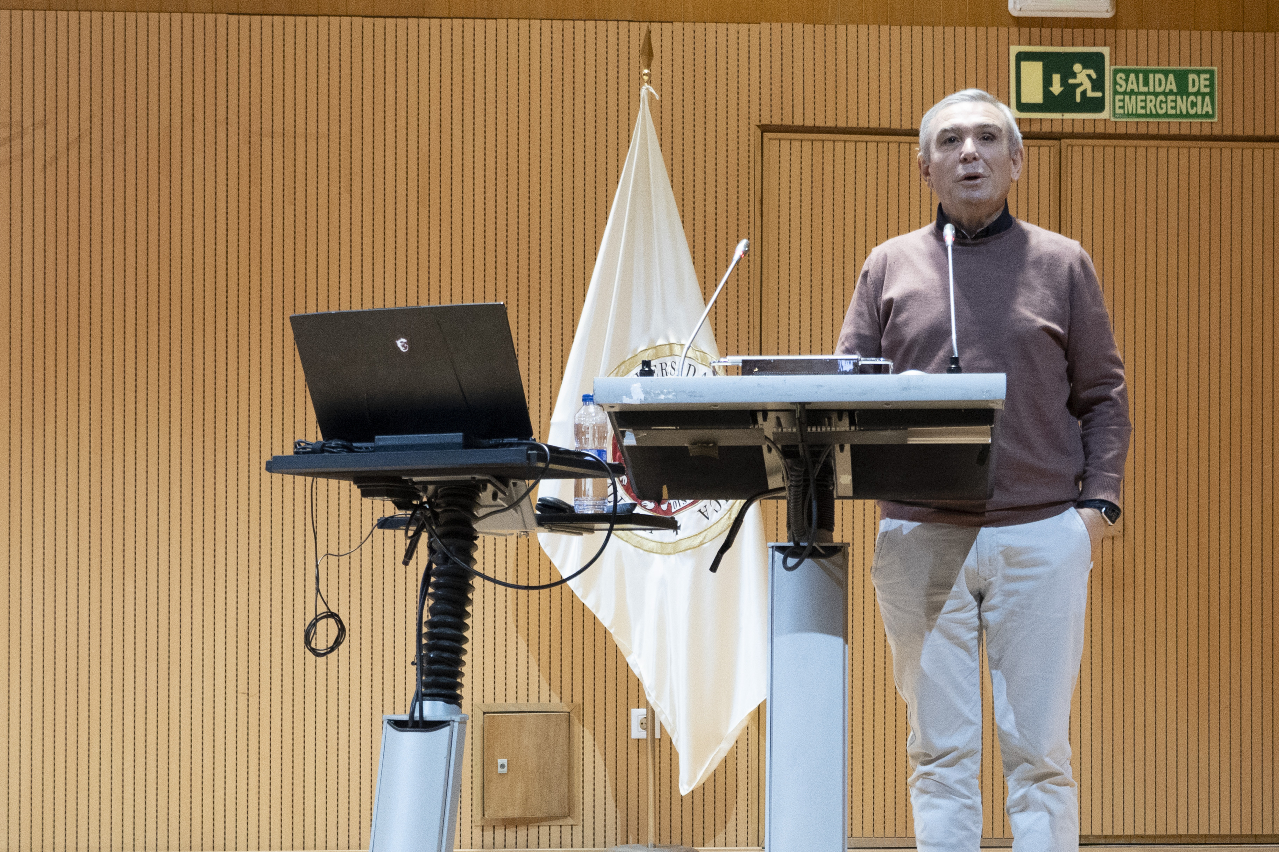 Tras su intervención, el Prof. Agustín Martínez ha impartido la conferencia “Del carbono fósil al renovable: una perspectiva desde la experiencia en catálisis”, en la que ha explicado el origen y las consecuencias de las emisiones de CO2, la importancia de la catálisis para reducir las emisiones de CO2 en los sectores energéticos e industriales y cómo el gas de síntesis (syngas) es una plataforma versátil para producir combustibles y productos químicos, a partir de múltiples materias primas. También ha descrito las últimas investigaciones realizadas sobre la reacción de Fischer-Tropsch (FTS), sus limitaciones y la importancia de los catalizadores FTS a base de cobalto para la conversión de gas de síntesis en hidrocarburos líquidos. Finalmente, ha detallado las propiedades y las formas de producción de los combustibles sostenibles de aviación (Sustainable Aviation Fuels, SAF), así como su importancia para el futuro del planeta.