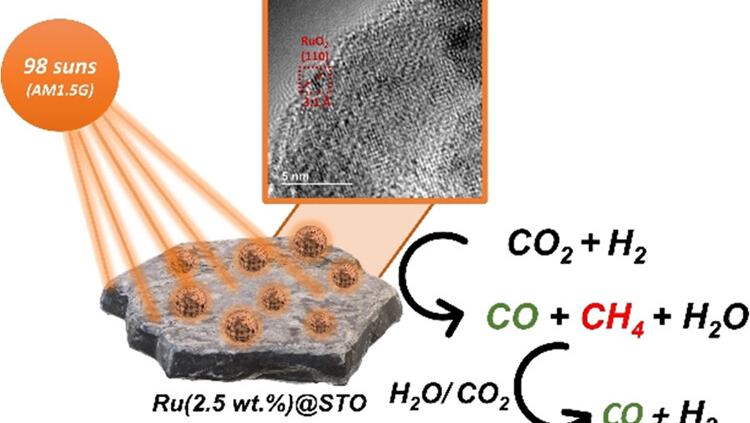 El estudio, liderado por el grupo de investigación HG-Energy del ITQ (UPV-CSIC), ha determinado que la causa de los cambios de selectividad observados en el catalizador foto-térmico – basado en nanopartículas de rutenio soportadas en titanato de estroncio – se pueden atribuir a las diferencias de temperatura conseguidas en función de la intensidad de luz aplicada.