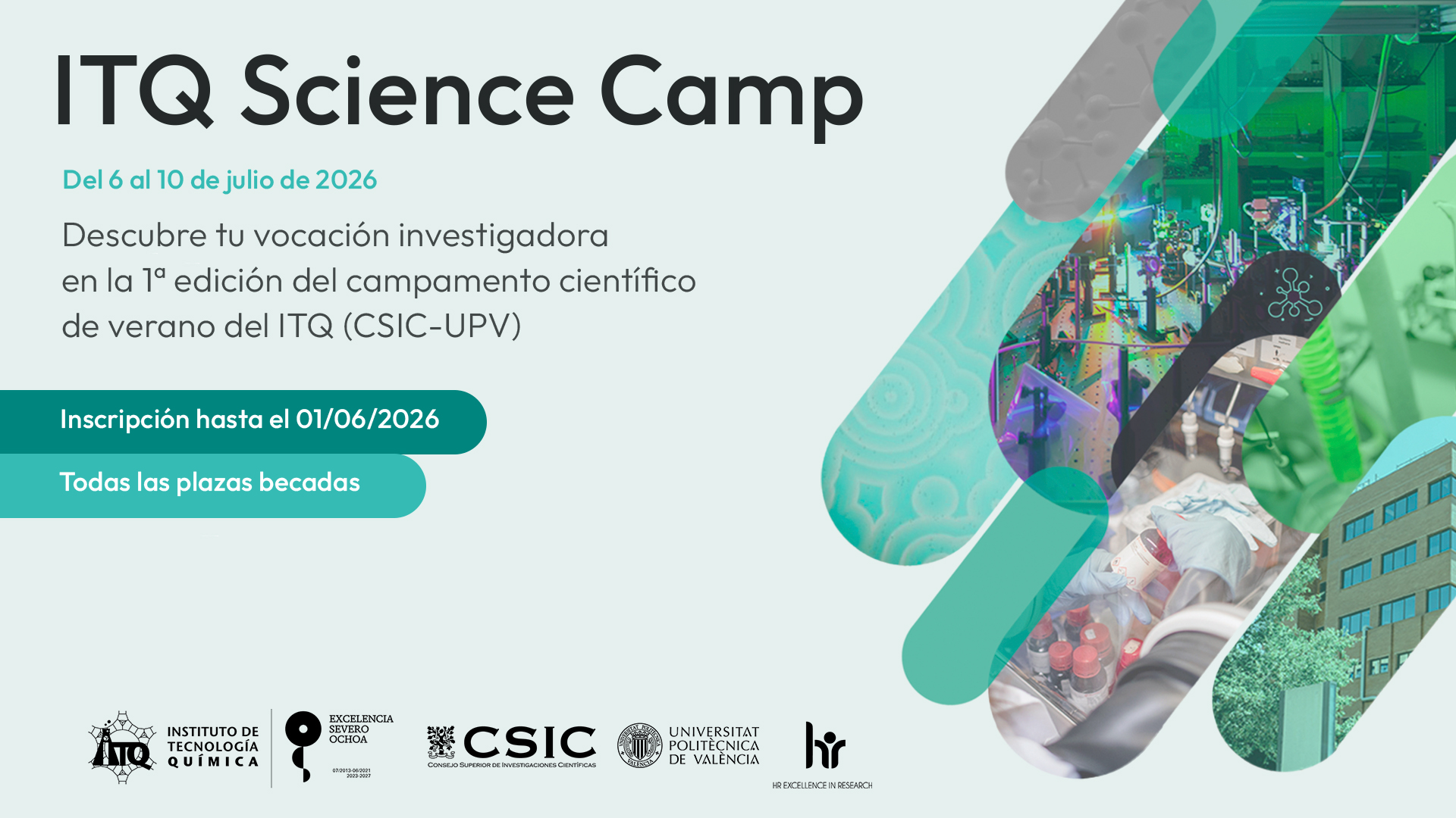 El Instituto de Tecnología Química (ITQ CSIC-UPV) ha organizado la primera edición del campamento científico de verano, ITQ Science Camp, que tiene como objetivo promover la vocación científica e investigadora entre estudiantes de grado y máster. El evento se realizará del 6 al 10 de julio de 2026 en las instalaciones del ITQ (Avinguda dels Tarongers s/n, València).