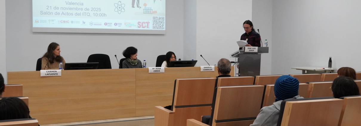 La jornada fue presentada por José Luis Jordá, responsable de la Comisión de Igualdad del ITQ, y la mesa inaugural estuvo presidida por Salomé Cuesta, vicerrectora de Arte, Ciencia, Tecnología y Sociedad de la UPV, que estuvo acompañada por Cristina Martínez, vicedirectora del ITQ y Jaime Pérez del Val, jefe de la Unidad de Cultura Científica del CSIC.