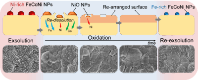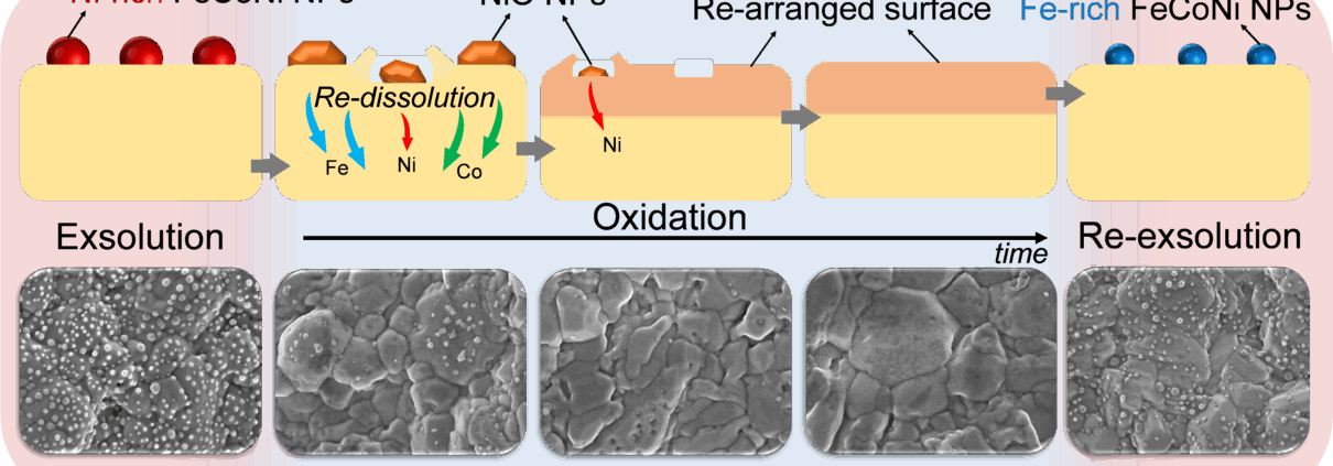 En la última década, la exsolución ha destacado por ser una prometedora ruta de fabricación de nanocatalizadores metálicos soportados en óxidos. A través de la exsolución, los óxidos de perovskita pueden producir nanopartículas metálicas bien ancladas en condiciones controladas. Si este proceso también puede funcionar a la inversa, podría permitir la regeneración del catalizador.